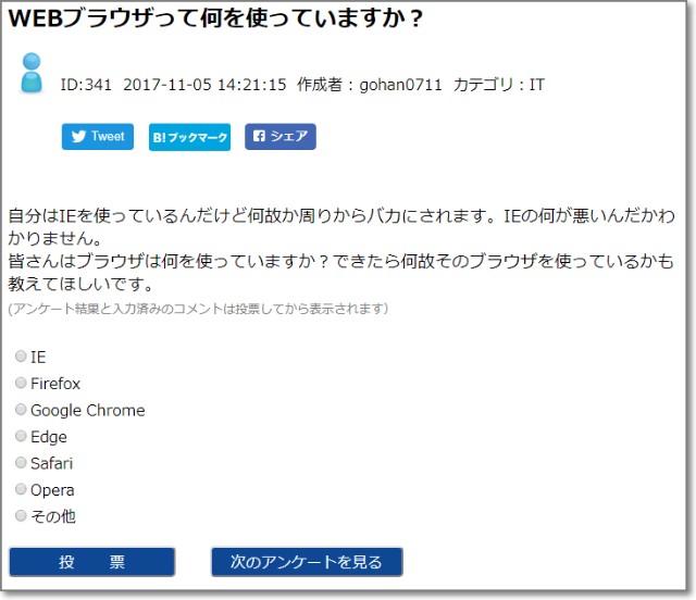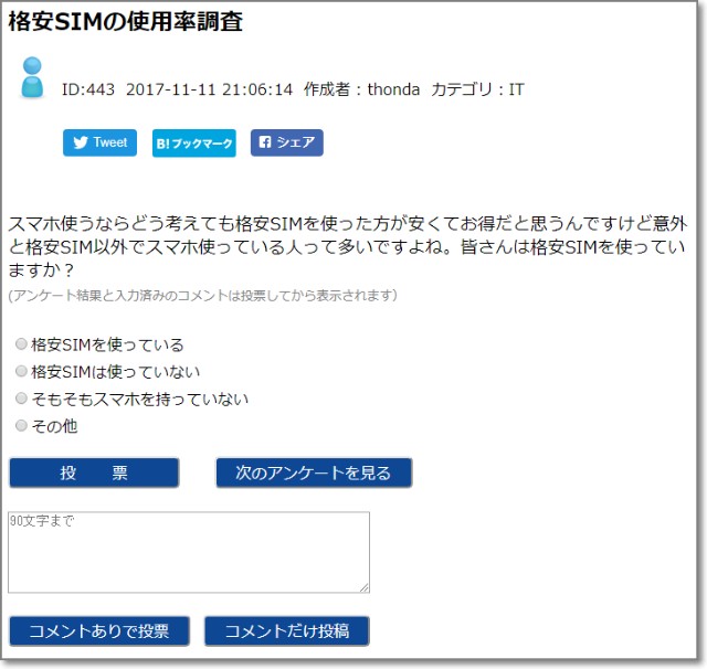 SNSのように、気楽にやりとりできるアンケート・サイト。
