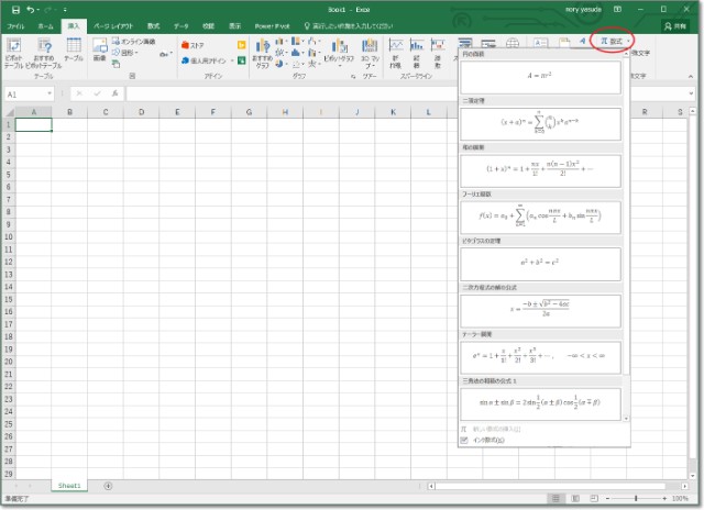 エクセル2016から、「数式の挿入」機能が新しくなっていました。