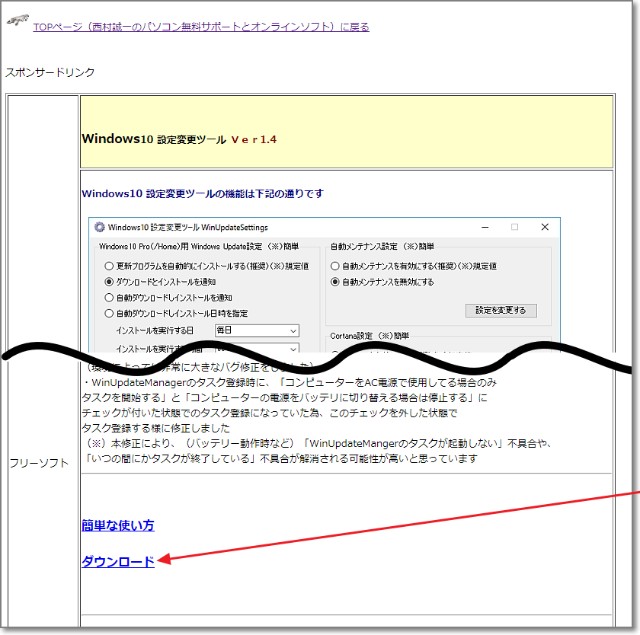 中ほどにある「ダウンロード」から、ソフトを入手します。