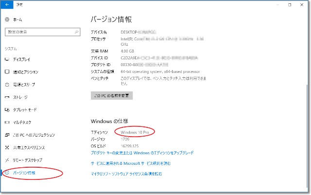 なお、Windows10 Pro/Homeいずれかがわからないときは、