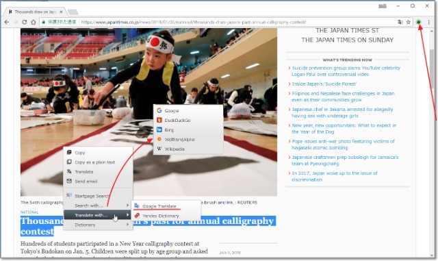 Webページの文字を選択して、コピー・翻訳・検索を頻繁におこなう人には便利。