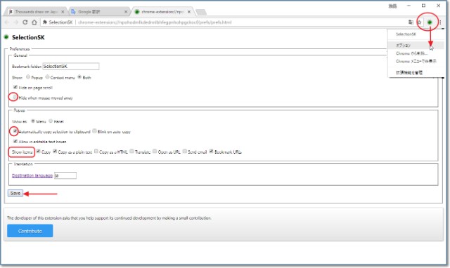文字を選択すると、コピーや翻訳といったメニューがポップアップする拡張機能。