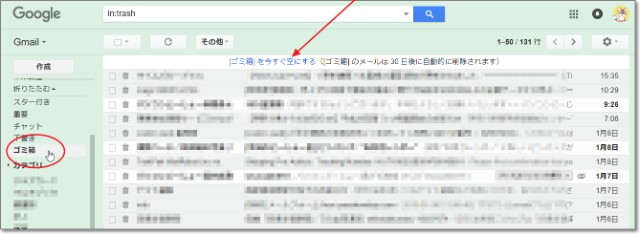 最初に、「ゴミ箱」トレイを開いて、「ゴミ箱を今すぐ空にする」をクリック。