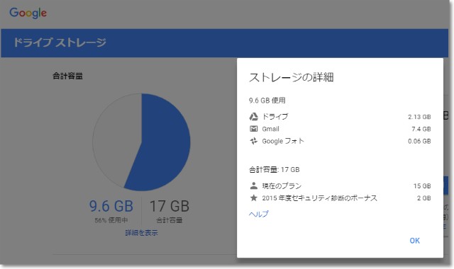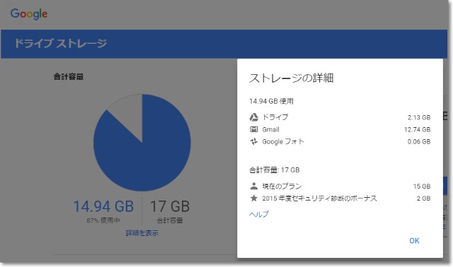 Googleドライブの無料容量(通常は15GB)が足りなくなってきたら、