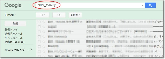 「画像や添付ファイルで容量が大きくなったメール」を検索します。