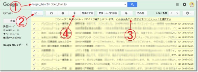 ③「この検索条件に一致するすべてのスレッドを選択する」をクリック。