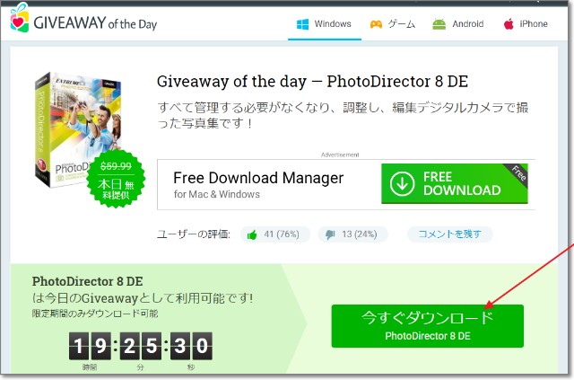 「Giveaway of the Day」のページで、「今すぐダウンロード」。