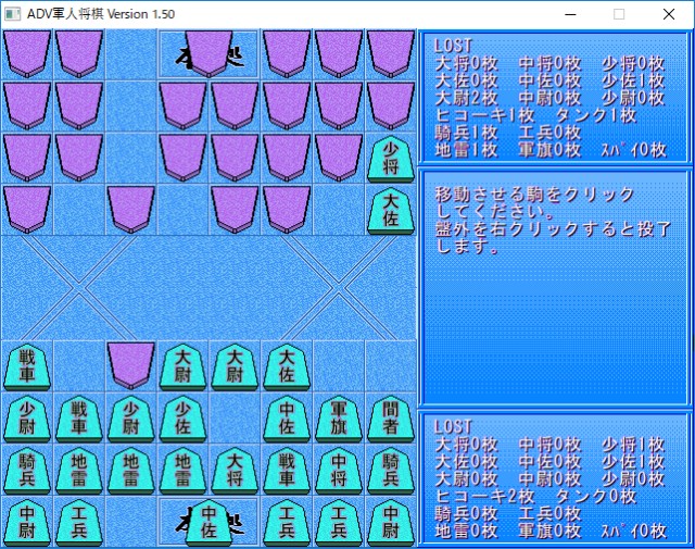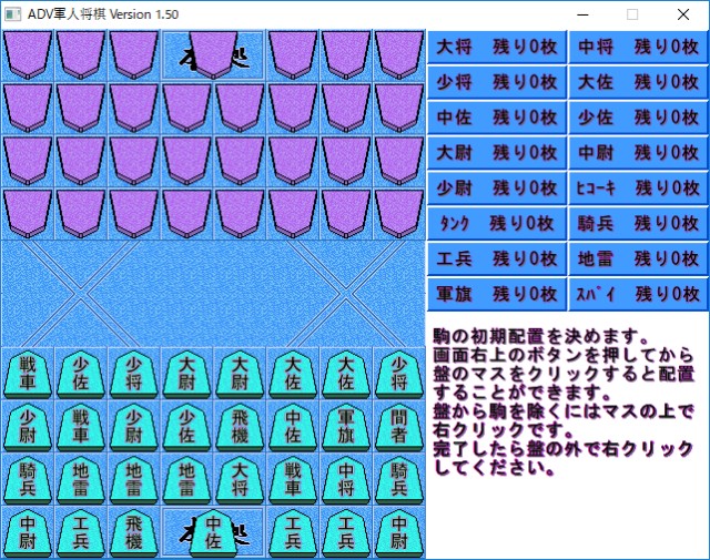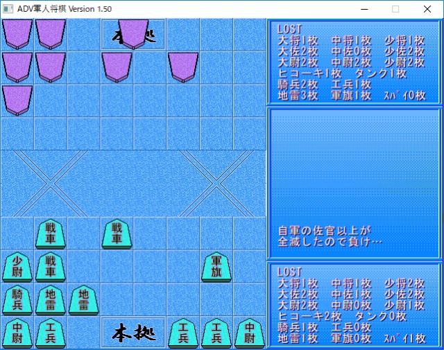 […] 昨日紹介したソフトよりも、少し盤面が小さいです。 軍人将棋は、いろいろとローカルルールがあるようです。 […]