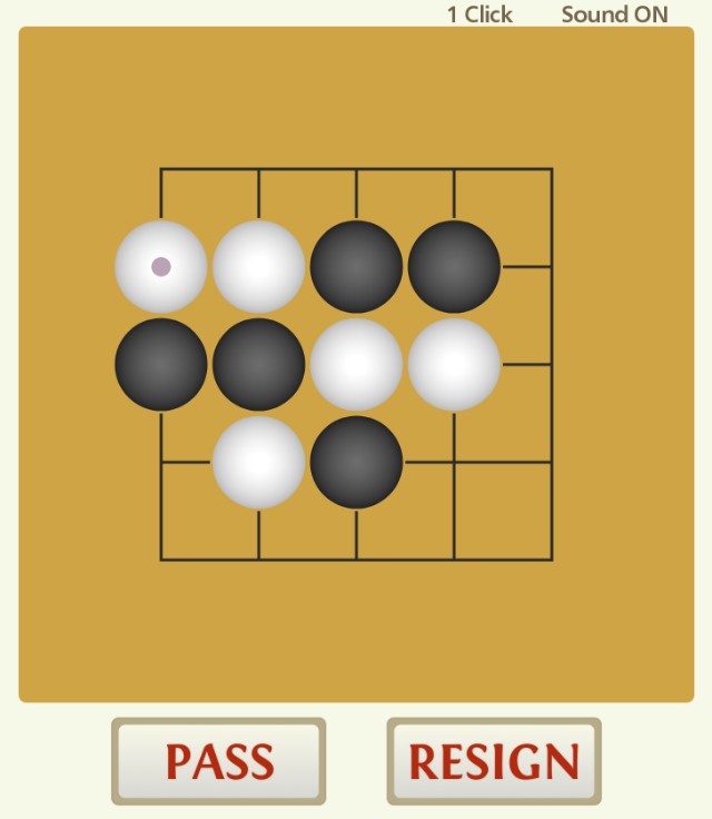 「囲碁対局ゲーム」は、5路盤から選べるので、お手軽。