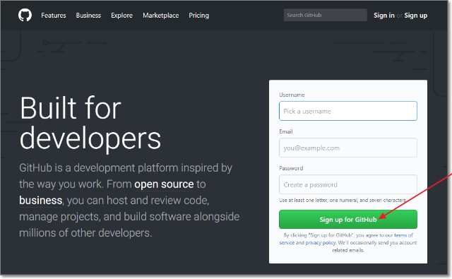 ユーザー名・メールアドレス・パスワードを登録して、「Sign up for Github」。