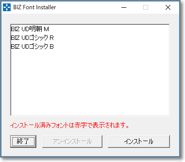 →できた「BIZFontinstaller.exe」というファイルを実行します。
