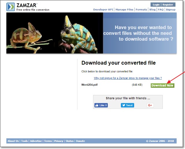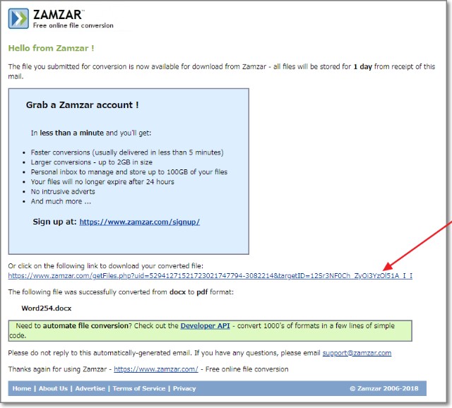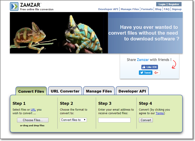 Zamzar自体が、ファイルフォーマット変換のWebサービスですが・・・