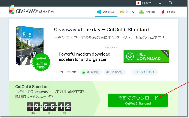 「Giveaway of the day」のページで、明日3月24日の午後5時まで無料入手できます。