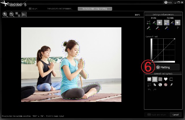 5.「Outside」側のポリゴンツールを選んで、切り取り対象の「外側」を囲みます。