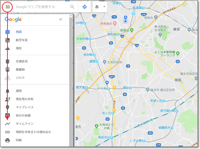 ハンバーガー・アイコン(メニュー)→「タイムライン」。