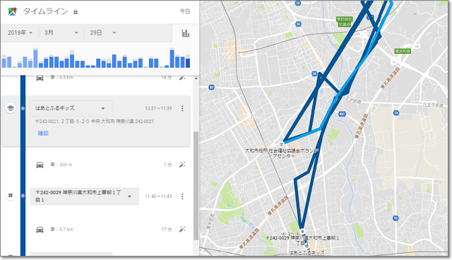 Googleマップ(パソコン・スマホアプリとも)のタイムラインを使うと、
