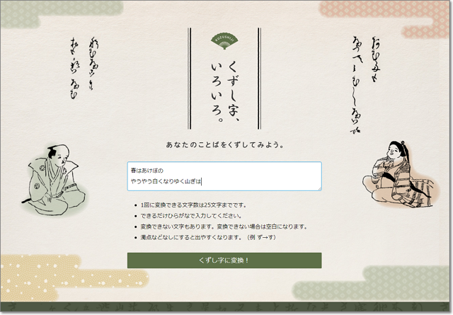 入力した文字を、くずし字(画像)にしてくれるWebサービス。