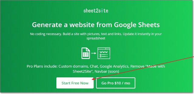 そして、Sheet 2 Siteページで、「Start Free Now」をクリック。