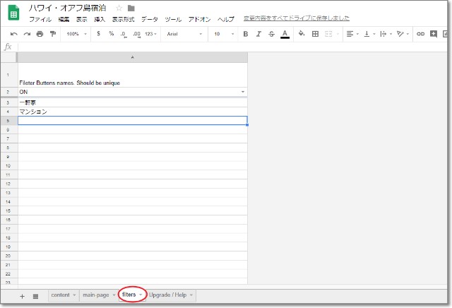フィルター機能を使う場合は、「filters」タブに記載します。