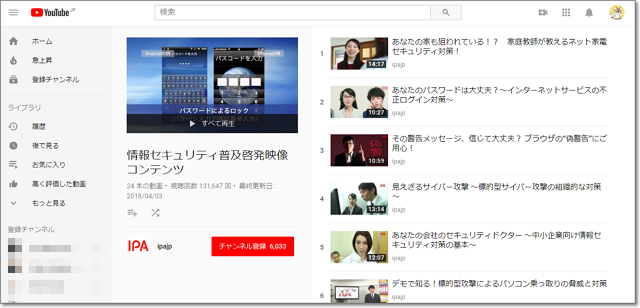 パソコン身近なITセキュリティについて教えてくれる、動画チャンネル。