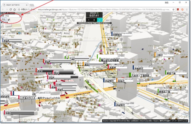 時刻表に従って、電車・バスの動いている様子が、リアルにわかります。