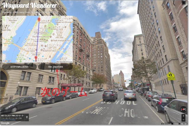 ストリートビューで迷子にさせられ、目的地を目指すゲーム。
