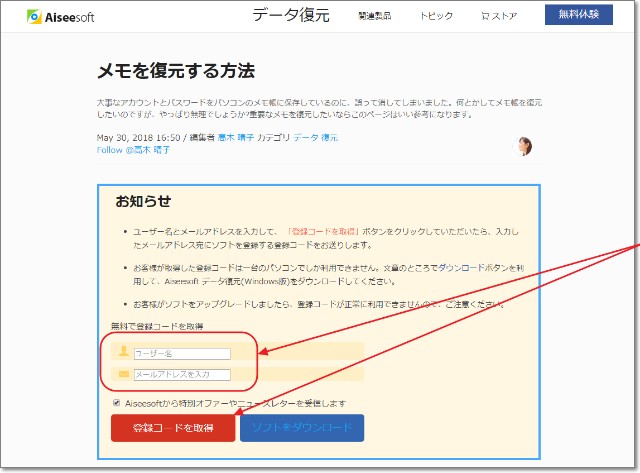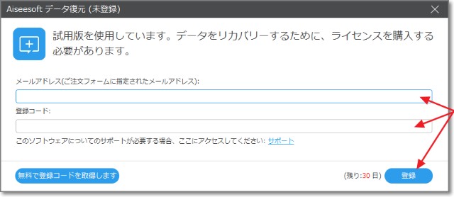 ソフトを起動すると、最初にメールアドレスと登録コードを聞いてきます。