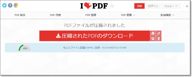 すぐにダウンロードが始まり、圧縮率が表示されます。