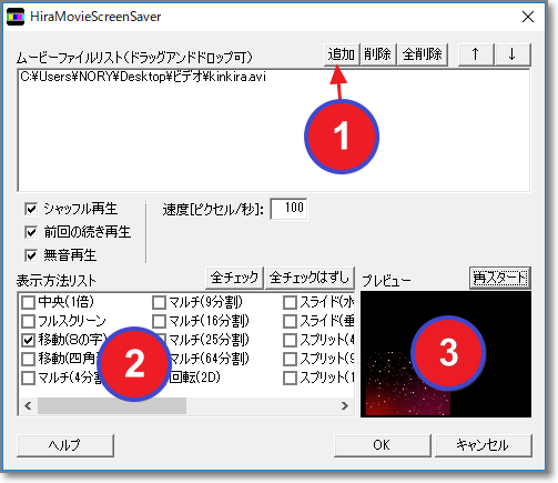 →解凍してできる「HiraMovieScreenSaver.scr」を右クリック