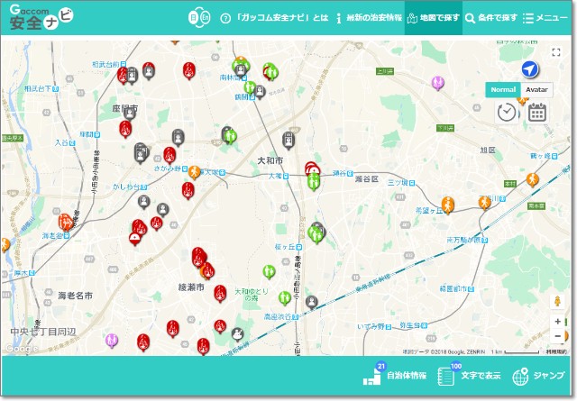 地域のいろいろな治安情報を、簡単に調べられるサイト。
