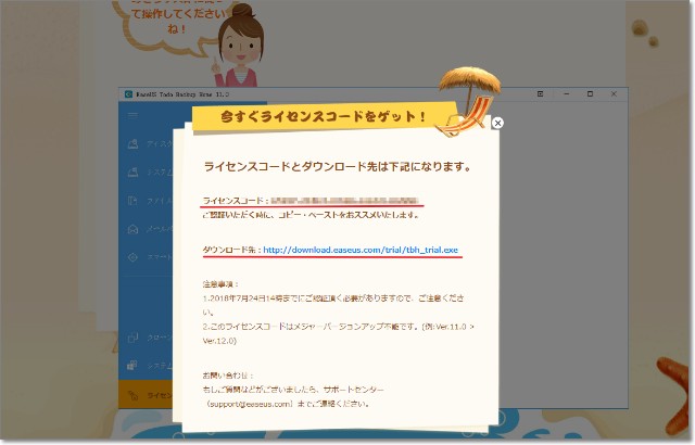 最後に、インストールファイルのダウンロードリンクと、ライセンスコードが出ます。