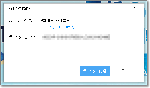入手したライセンスコードをコピペして、「ライセンス認証」。
