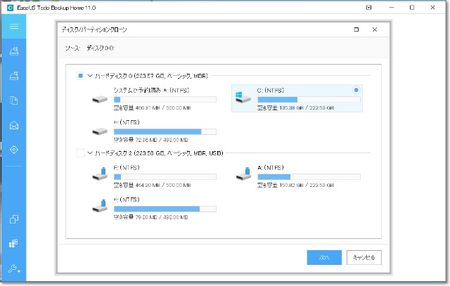 「ソース」にCドライブ(SSD)を選択して、「次へ」。
