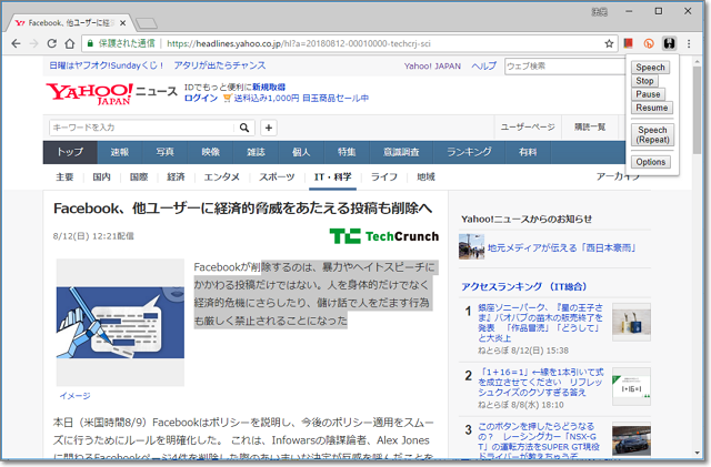 Webページをスラスラと読み上げてくれる、Chrome拡張機能。