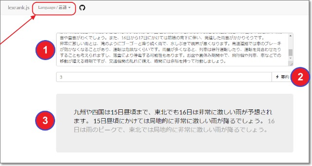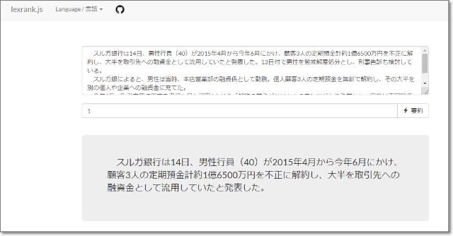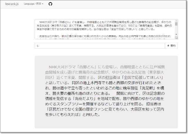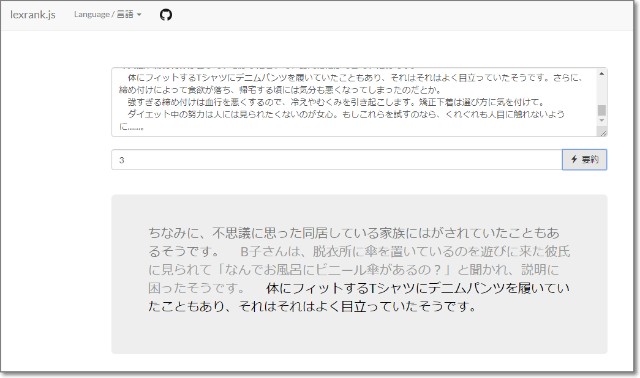 2.要約文の文数を入力して、「要約」をクリックすると、