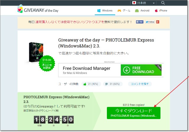 有料ソフトですが、「Giveaway of the Day」のページで、