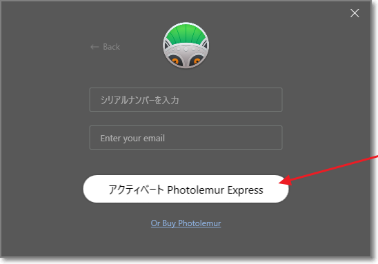 先ほどのライセンスコードを貼り付け、メールアドレスを入力して、