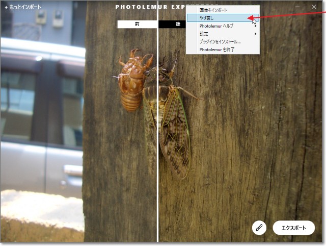(「エクスポート」しないと、「やり直し」メニューは出ません。)