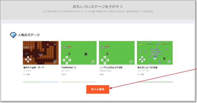 上部メニュー「みんなのステージ」で、アップされたゲームを見てみましょう。