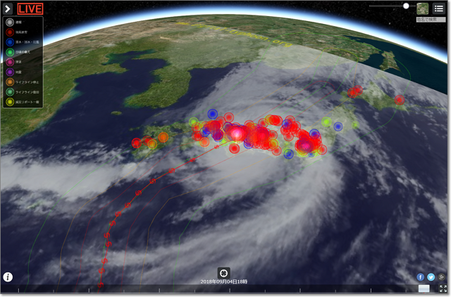 リアルタイムでの台風の様子と、被害状況がわかります。