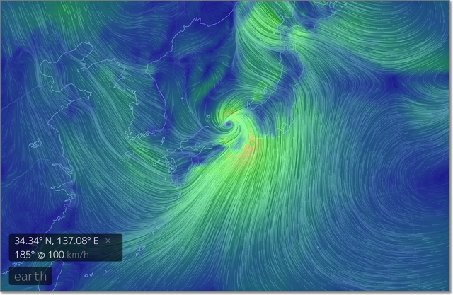志摩半島あたりをクリックすると、なんと風速100km/h。