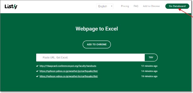 ログインしたら、右上「Go Databoard」でデータボードへ。