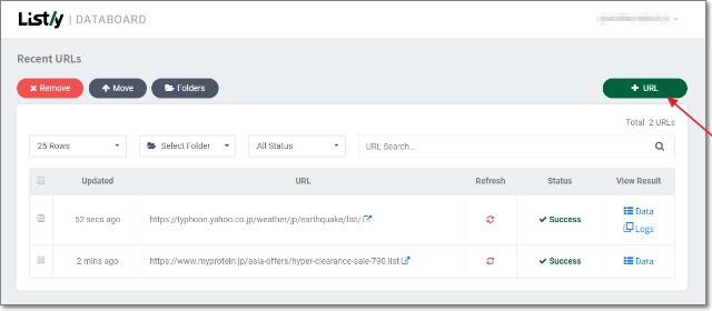 各URL行の「Data」をクリックすると、リスト化されたページに。