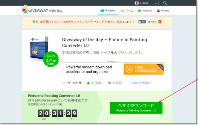 「Giveaway of the Day」のページで、明日9月28日(金)17時までなら無料です。