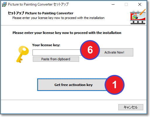 6.インストールウィンドウに貼り付けて、「Activate now!」。