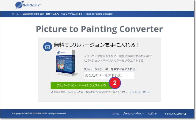 2.開いたWebページでメールアドレスを入れて、「~をリクエストする」をクリック。