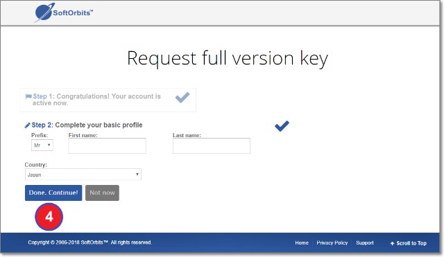 4.開いたWebページで、名前を入れて「Done, Continue!」をクリック。