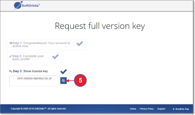 5.ライセンスキーが表示されるので、コピーボタンをクリックして・・・