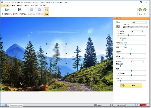 写真をドラッグ&ドロップして、右側「ツールボックス」で調整して、「実行」するだけ。