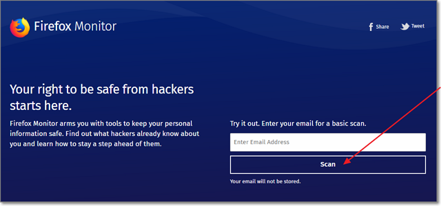 メールアドレスを入れて、「Scan」をクリックするだけ。